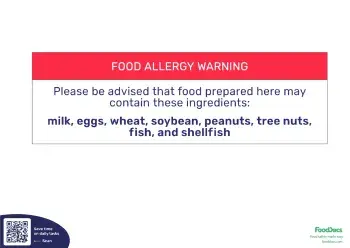 Put up reminder food safety posters, include allergen checks in daily routines, and encourage staff to speak up if they spot a risk. You can also use FoodDocs’ food safety management software to attach step-by-step photo or video instructions to every allergy-related task that staff might perform.