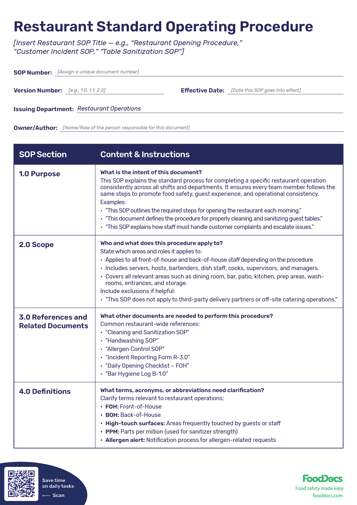 The goal is that for any routine task or scenario in your restaurant, an employee can refer to the SOP and know exactly how to handle it from start to finish.