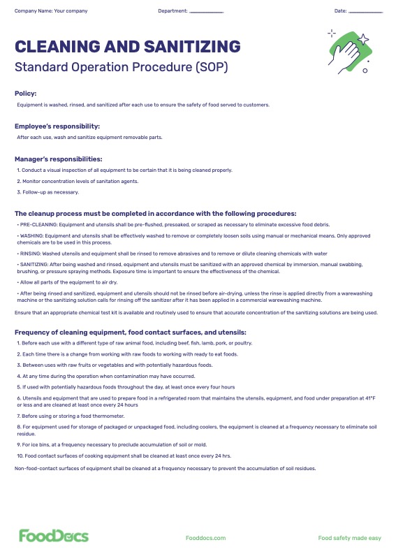 And if you have a health inspection coming up, your records of completed cleaning schedules and SOPs can demonstrate your diligence. In fact, keeping a cleaning log is often part of regulatory compliance.